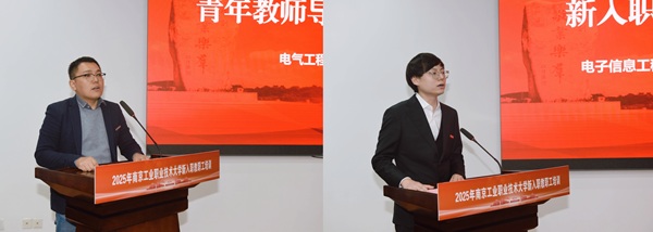 青年教师导师杨超副教授和新教师徐真真博士分别代表发言。杨超副教授结合自身十年磨砺与从企业工程师到南工教师的转型之路,分享育人感悟。他表示将倾力帮扶青年教师成长,勉励新教师勇于突破“舒适区”,实现与学校发展同频共振。徐真真博士分享了从产业研发转身回归学术研究再到投身职教的选择,感谢学校的培育与支持,表达了与学校共成长的信心。