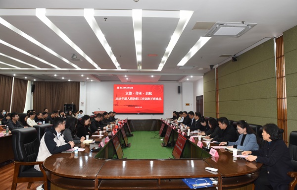 一是知南工:溯源百年路,厚植家国情怀。谢永华介绍了学校从中华职业学校发展为南京工业职业技术大学的百年峥嵘岁月,勉励全体新教师厚植家国情怀,牢记初心使命;二是融南工:立时代潮头,勇担职教使命。谢永华介绍了学校与行业领军企业合作,积极引领中国“职教出海”,为区域经济发展和扩大中国职业教育国际影响力贡献智慧与力量的奋斗历程。勉励新教师发挥聪明才智,积极融入南工,为早日实现“全国领军、世界一流”的发展目标贡献力量;三是兴南工:弘扬教育家精神,共绘发展新篇。谢永华要求广大新教师要始终牢记习近平总书记的殷切嘱托,以“四有”好老师的标准要求自己,早日成长为“大先生”。